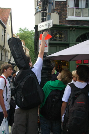 Jonny confuses the locals by putting up an arrow.
