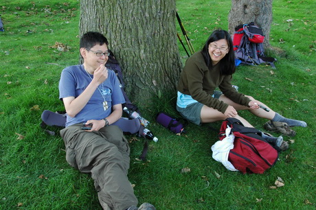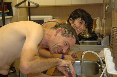 Having risen rather early, Ania and Aid show that it is possible to wash your hair in the kitchen sink.
