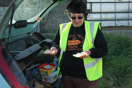 With assistance from a support car, pilgrims made it safely across the busy A1 without any incidents.