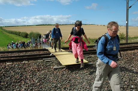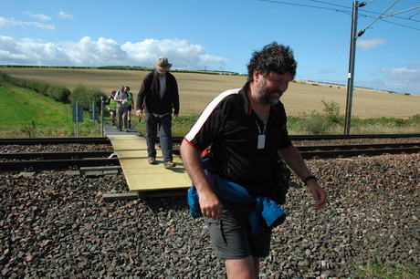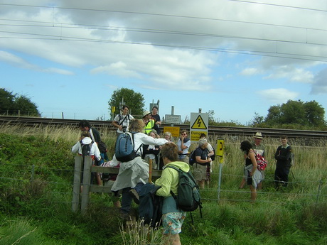 The East Coast railway, where trains pass at speeds of over 100mph, caused us to gather and phone the signal box to obtain permission to cross.