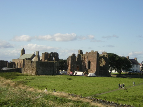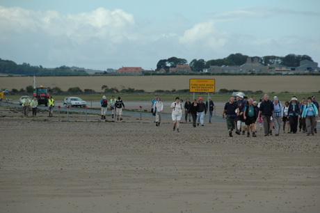 We head north-west out of Belford and climb to over 500 feet above sea-level which is our greatest elevation since the first two days in the North York Moors. Thereafter we follow St Cuthbert's Way and are soon heading for the coast. We recross the A1 and the railway line and similar arrangements to yesterday will apply. We reach the causeway just after the tide has gone out far enough for it to open, and make haste to our destination. The early start today is in order to maximise our time on Holy Island. In the evening, before our celebration service, we have the option to attend the parish evensong.