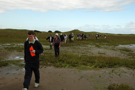 We moved onto the sand to follow closer to the official pilgrim route to the island.