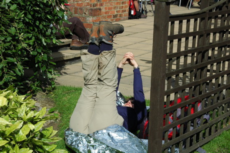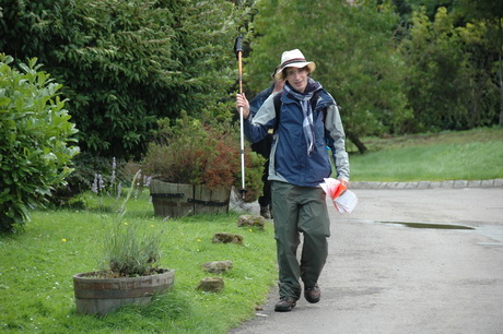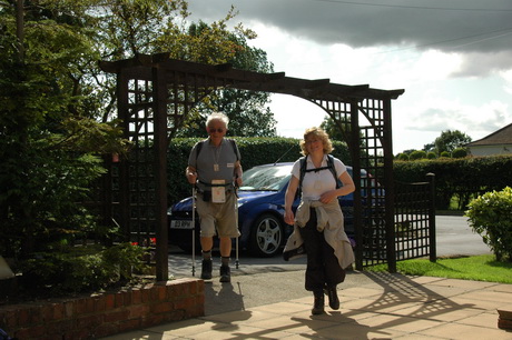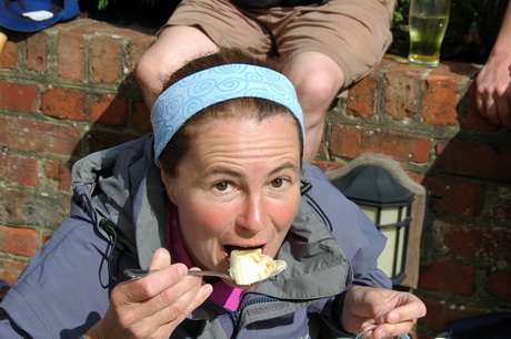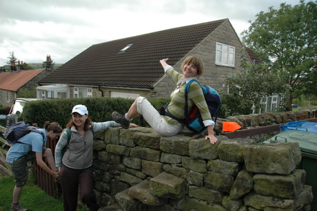 So, after prayers, we set off. Catherine demonstrates the elegant way to cross a stile.