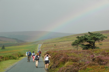 ...which soon came and sent the cameras away. But we crossed moorland of purple heather...