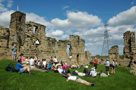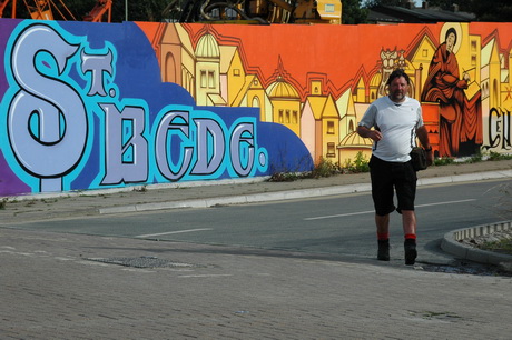 Mark writes "Today is another day where we have to find a way through a part of the industrial North East. For the first part we take the Great North Forest Trail (no present-day forests here!), and through the old coal mining town of Bolden. Here we visit St Nicholas’ church for our Eucharist service. The church is built on Saxon foundations, on the ancient monks’ route from St Peter’s at Wearmouth to St Paul’s at Jarrow. We then join the more modern Bede’s Way, which runs from Wearmouth to Jarrow. After lunch we visit the ruins of Bede's Abbey at Jarrow for a prayer stop, and then have time to look at the monastery ruins and the exhibition at Bede’s World. Bede’s World tells of the life of the Venerable Bede (AD673-735), one of Europe’s greatest authors & scholars. Bede spent his life on the estate of the monastery of Wearmouth-Jarrow, founded in AD673 by Benedict Biscop. He lived and worked in Jarrow for all but the first 7 years of his life, and rarely left the monastery. He lived during, and made a considerable contribution to, the Golden Age of Northumbria, a time of great artistic and intellectual achievement. His books were copied and studied throughout Europe. His most renowned work is The Ecclesiastical History of the English People, a work in which it is said he revealed himself as the first of the great modern historians. (Adapted from the Friends of Bede’s World leaflet) We (possibly) set a new pilgrimage statistic/record going under the Tyne through the pedestrian tunnel – at the lowest point we will be walking around 85 feet below sea level. The steam train enthusiasts might see something interesting on the North Tyneside Steam Railway, and we get a tantalising glimpse of the sea late in the afternoon."