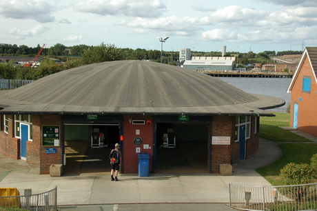 The entrance to the Tyne Pedestrian Tunnel (and the far entrance of you look closely)