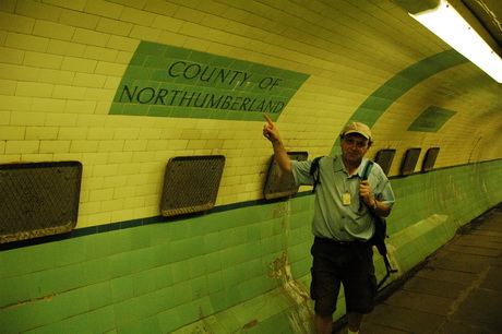 Half way through the tunnel we enter Northumberland, as Postman Francis points out.