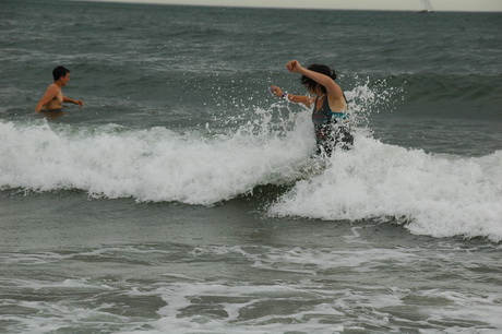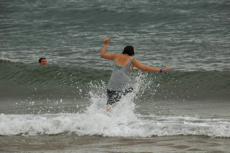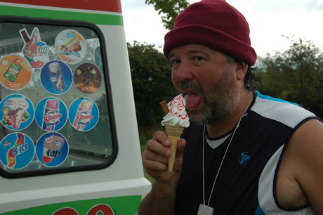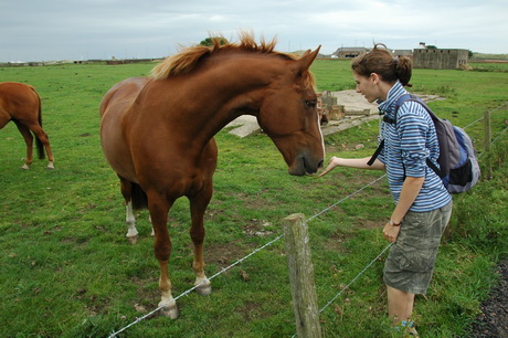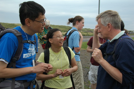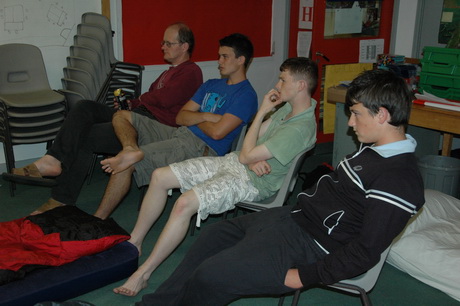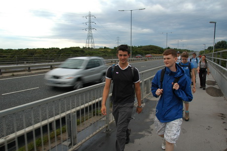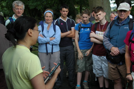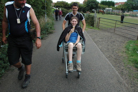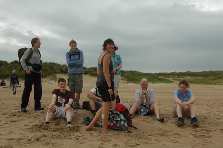 Ania dries off in the Northumberland sunshine as her fellow pilgrims remind her that she has no other clothes!