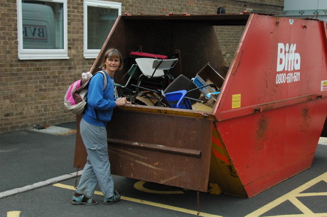 Catherine waits until no-one is looking to pick a new chair for her office.