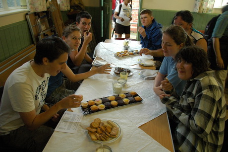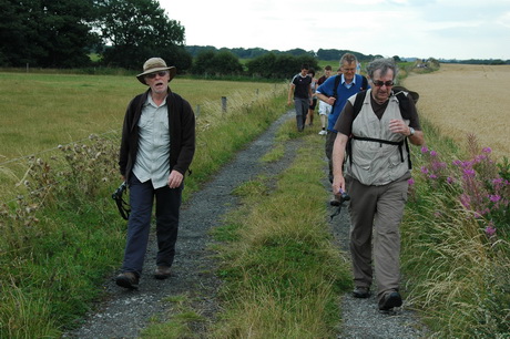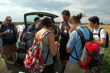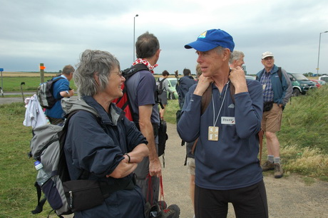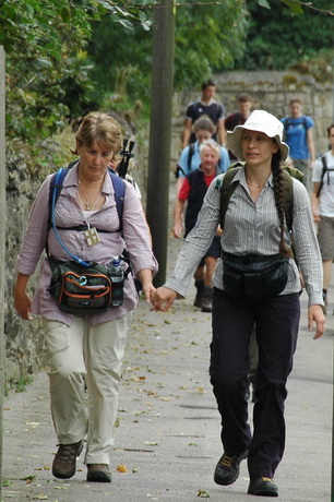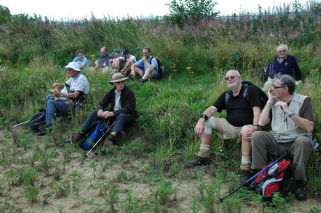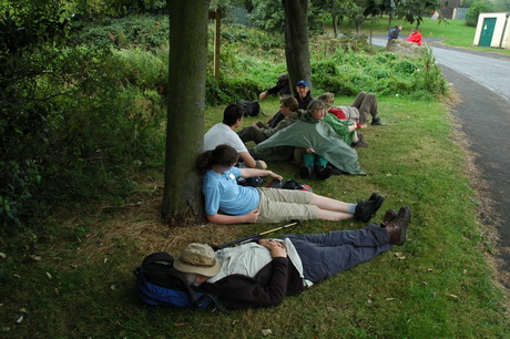 After lunch, the pilgrims chat, allowing the frontmarkers to get a head-start.