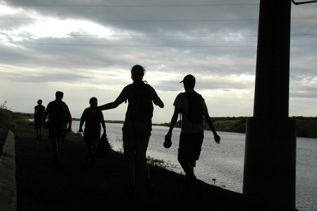 As the sun was setting, the pilgrims cast some interesting shadows.