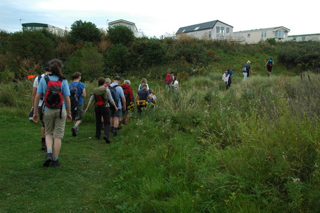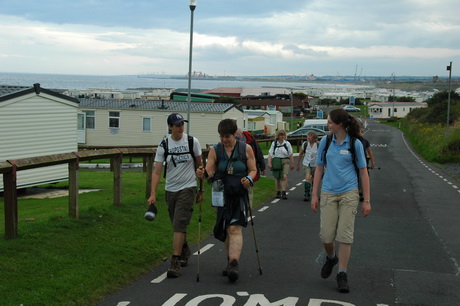 The group walks through a caravan park, each person looks longingly at the small chalets wishing they were staying there tonight!