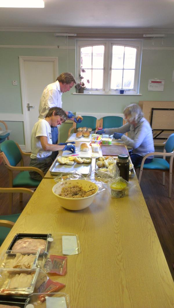 Sandwich making (complete with blue gloves) Pilgrimage 2012 Michael Gamble Original Tweet