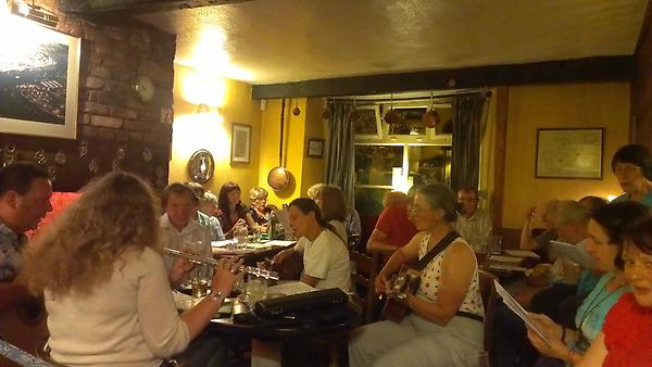 Pilgrimage 2012 30 pilgrims and 10 locals singing in the Vivary Arms Taunton John Chenery Original Tweet