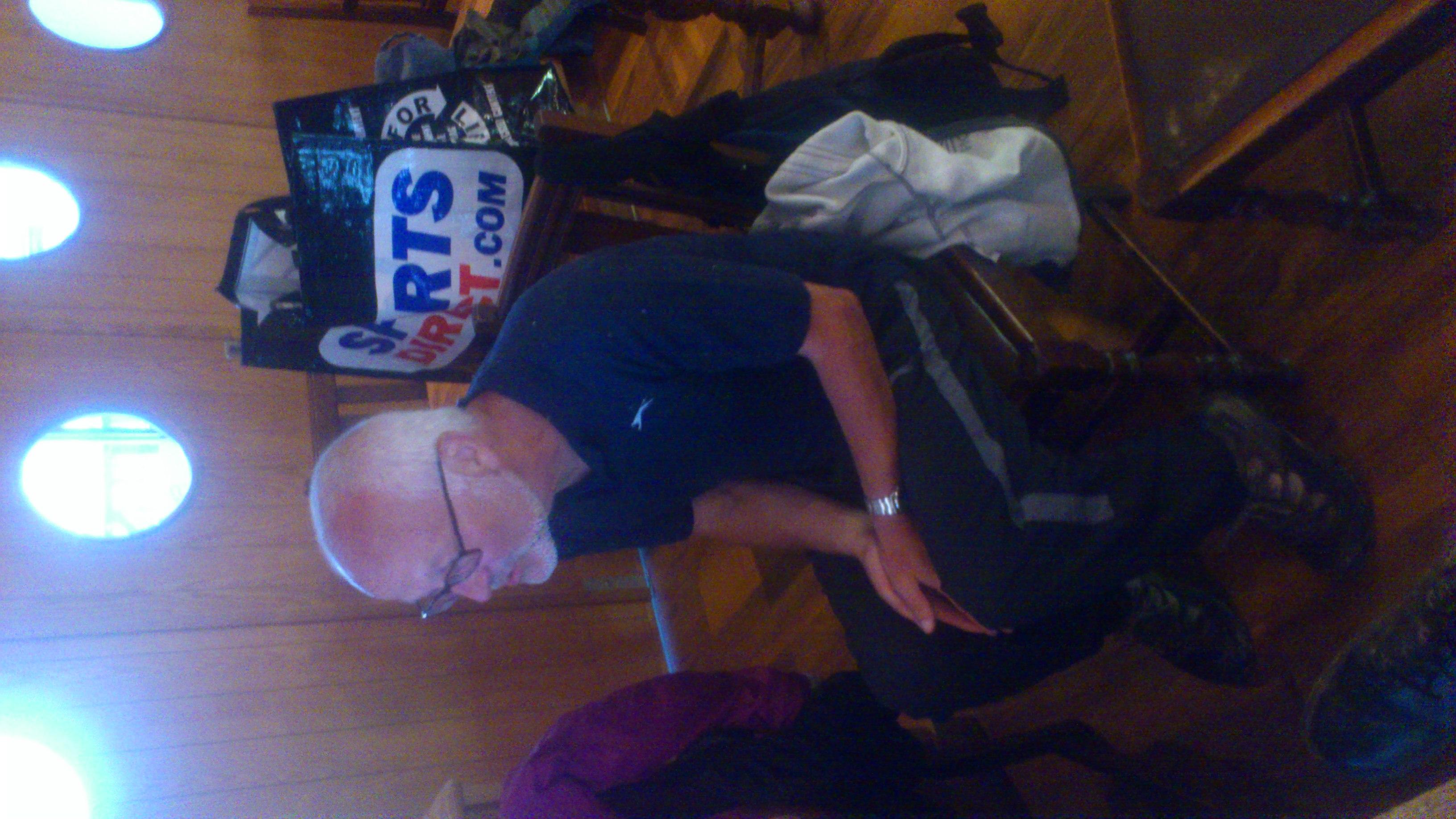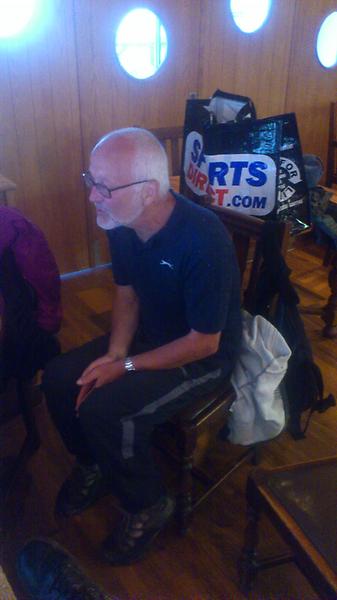 Pilgrimage 2012 Waiting for the ferry, Roger sporting his new clothes, the bag providing the evidence! Jonathan Gamble Original Tweet