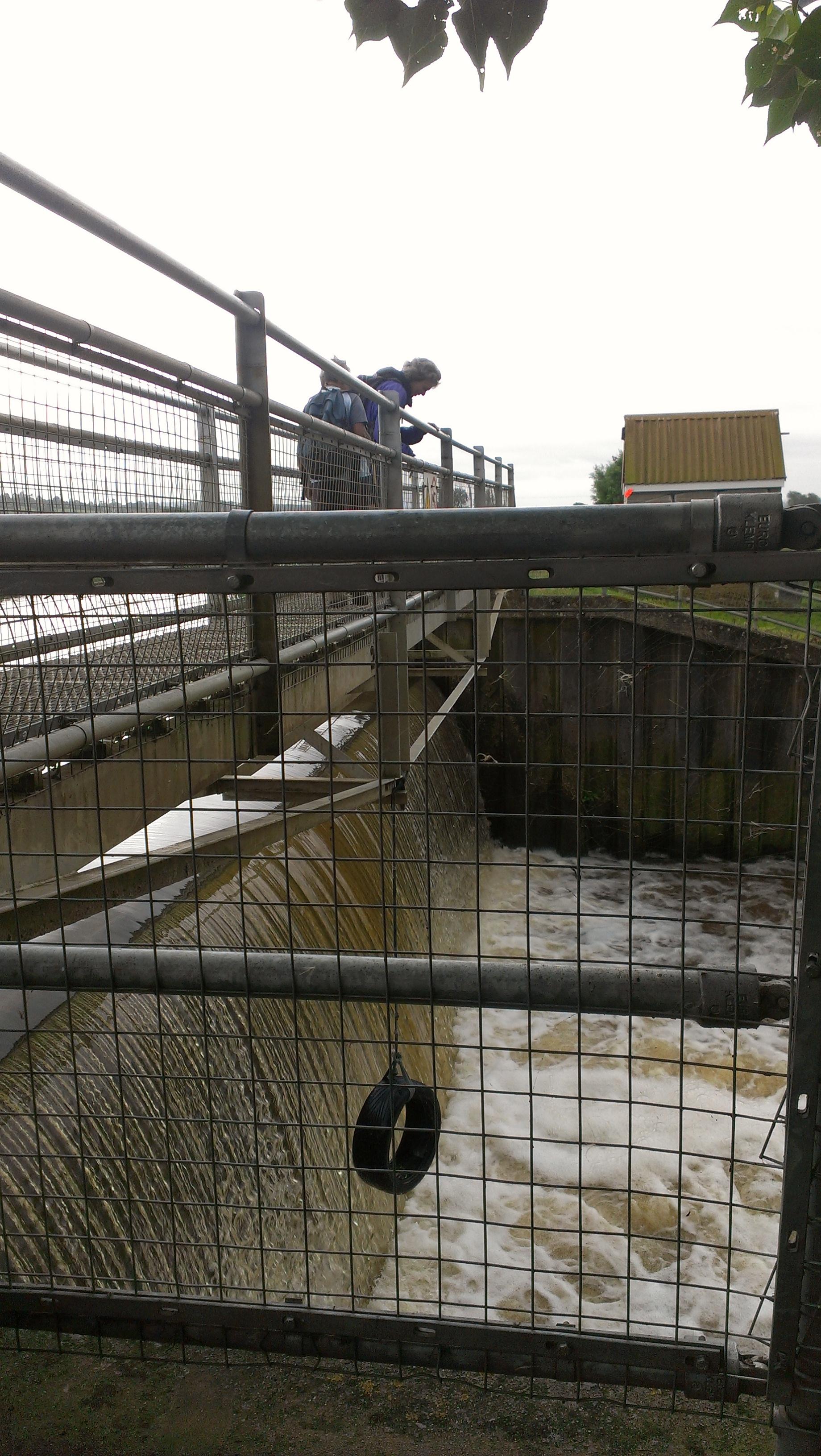 Anne and Marie wonder how to get to the tyre-swing above the weir Pilgrimage 2012 Michael Gamble Original Tweet