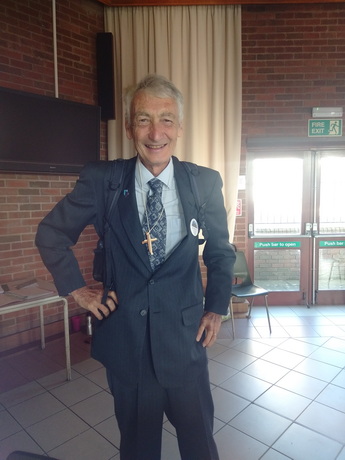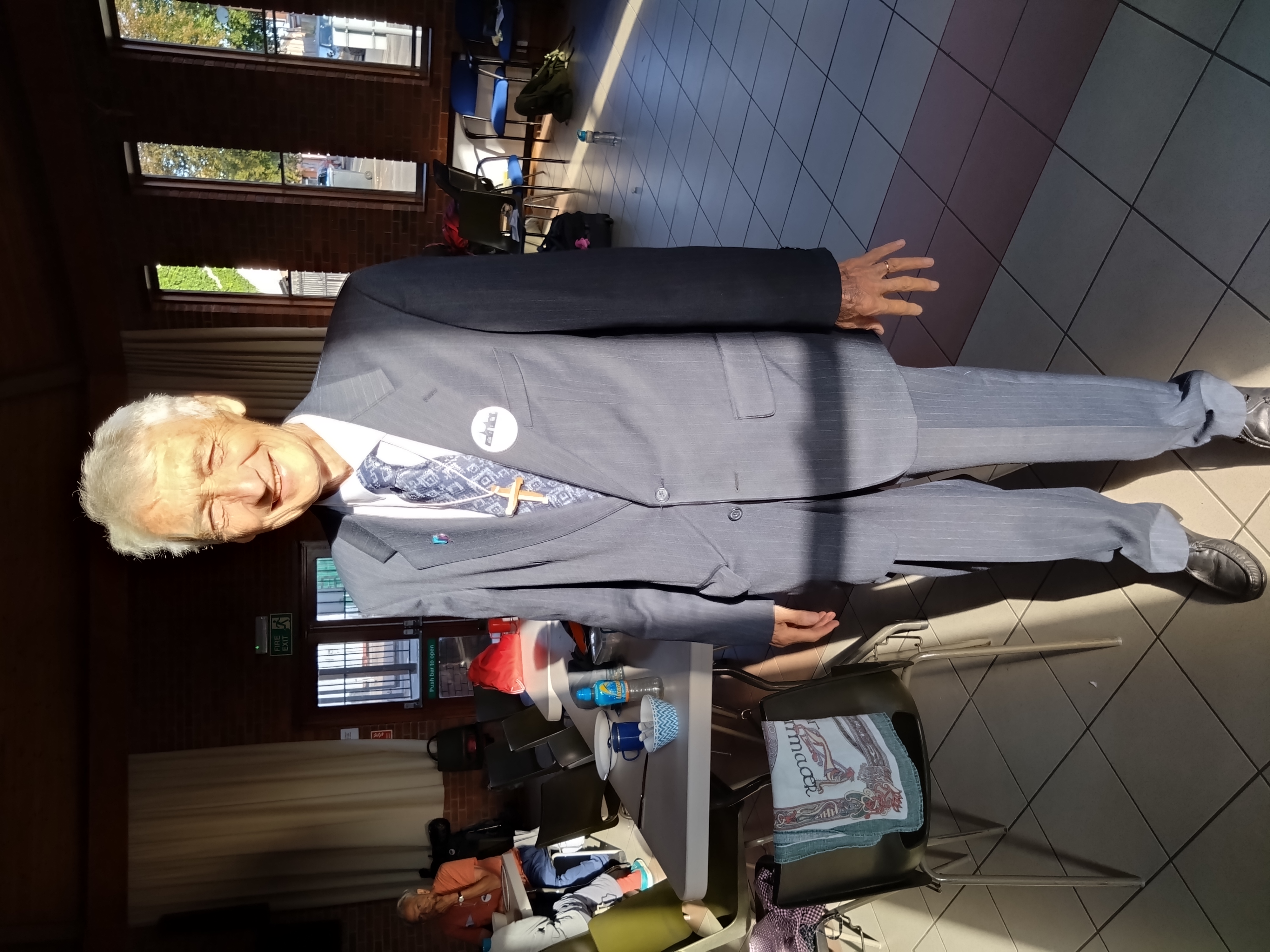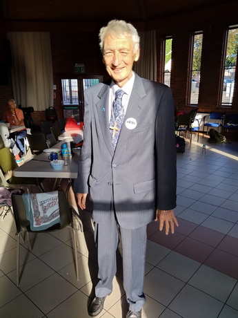 Unusual pilgrimage attire for Michael this morning (he is off to a family wedding) John Chenery