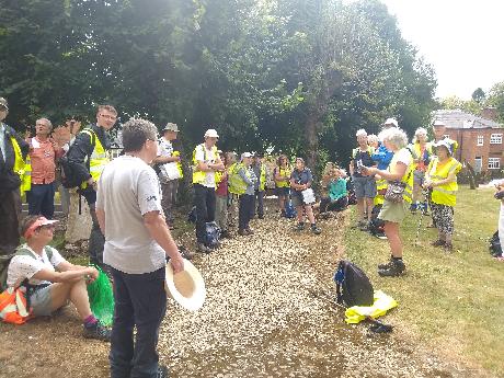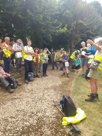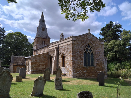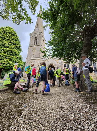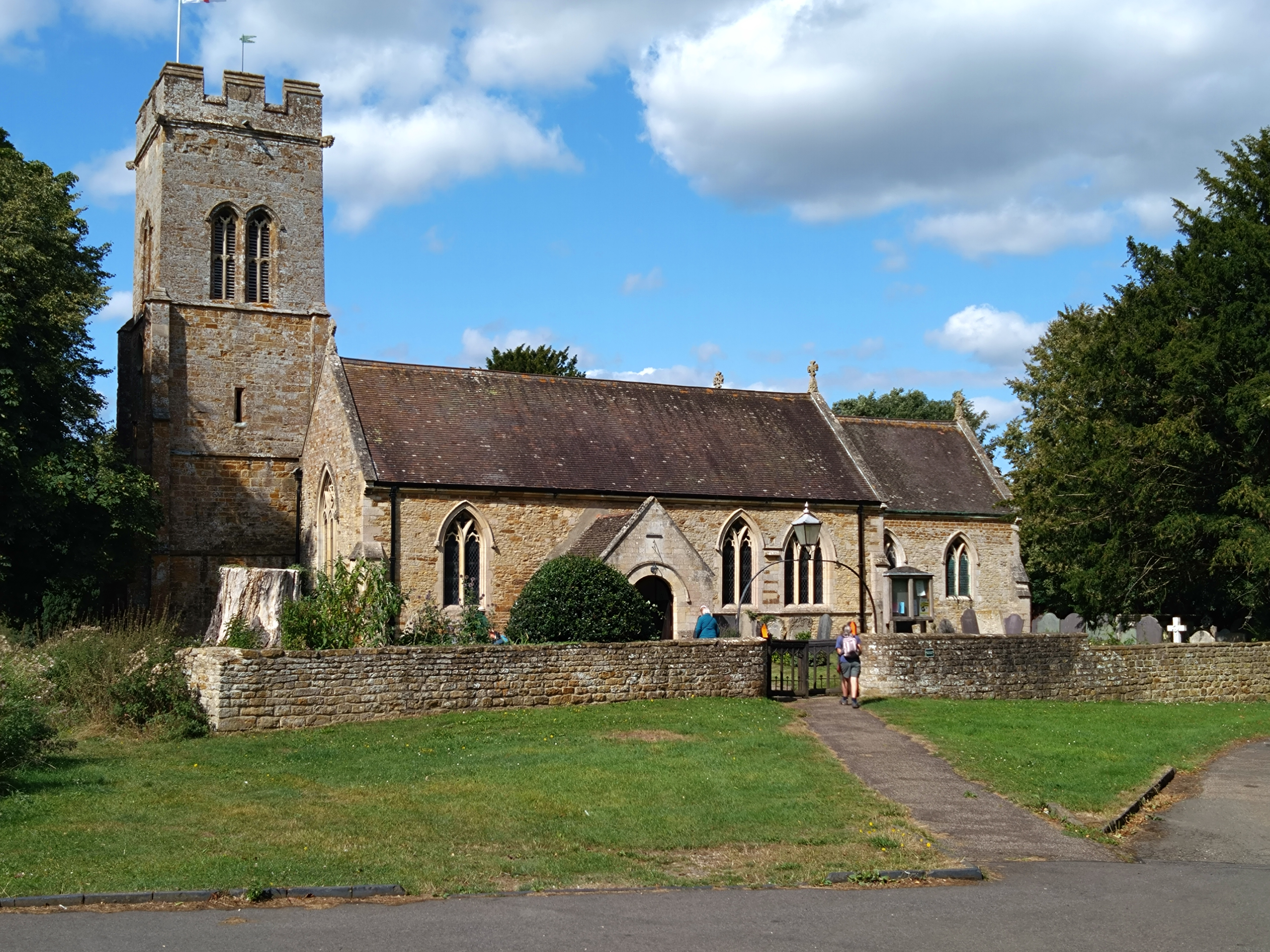 Today we will be leaving the town of Market Harborough via the “Brompton Valley Way” and heading into the nearby countryside and villages. The first village is Braybrooke, famous for its little bridge over the River Jordan. Its origins go back to 1401 and it was repaired in July 2024. Next we head across country and over the busy A6 road towards the village of Stoke Albany that has a pretty church, village hall, green and memorial. The lunch stop is ½ mile away from there in Wilbarston where pilgrims, by special arrangement, can eat their food inside “The Fox Inn”. After lunch we return to Stoke Albany and then head off to Weston-by-Welland and then on to Hallaton by way of quiet roads and tracks. We enter Hallaton along a passageway that is under the upper rooms of a house! Stenning Hall awaits.