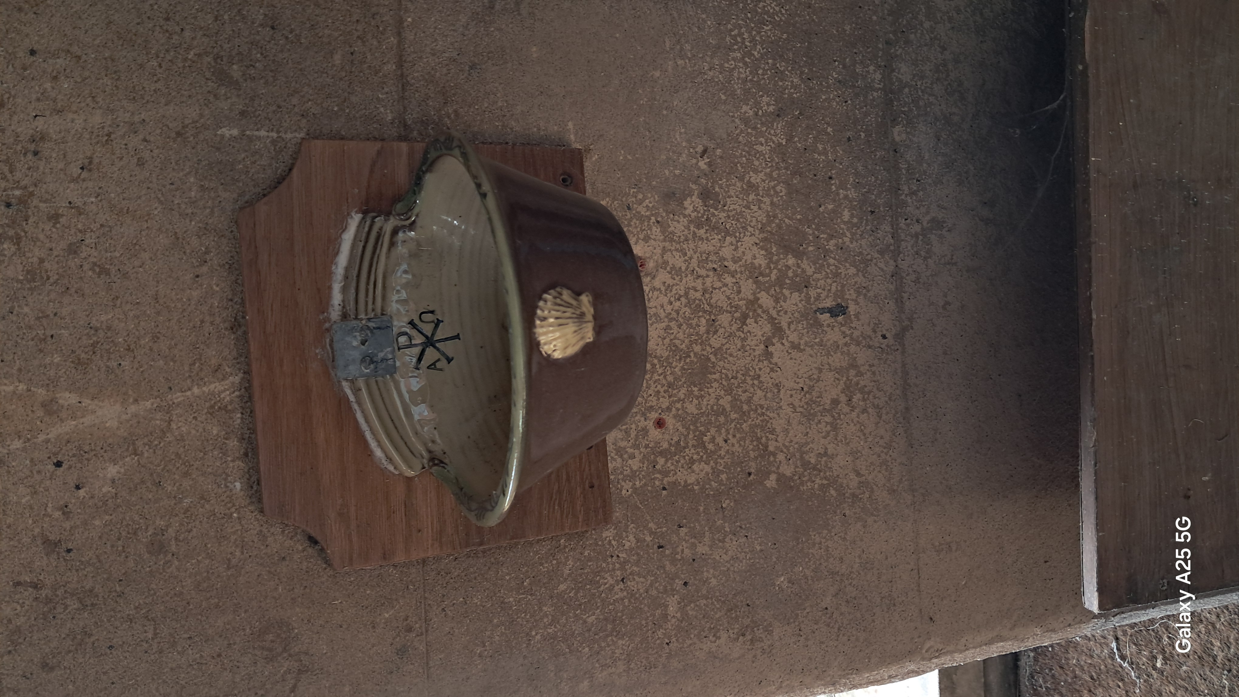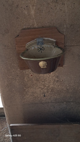 Pilgrims badge on holy water container St Kyneburgha's Church Caistor Francis O Sullivan