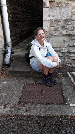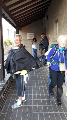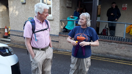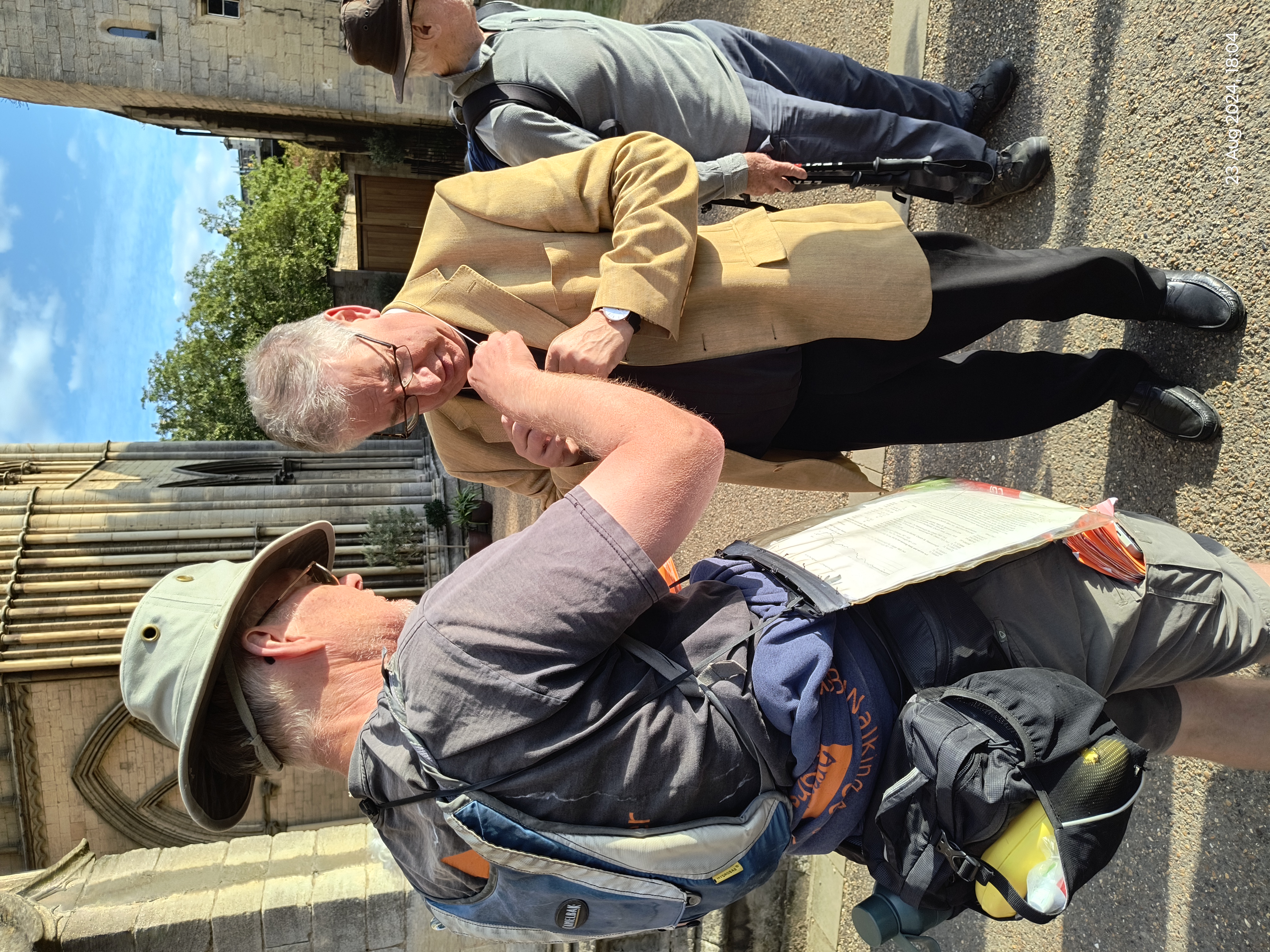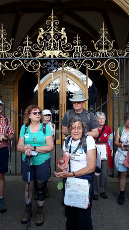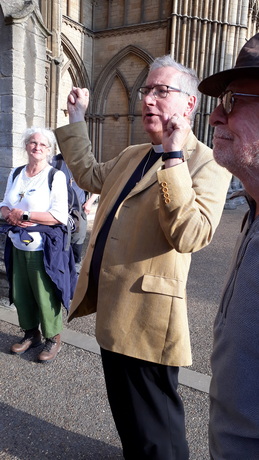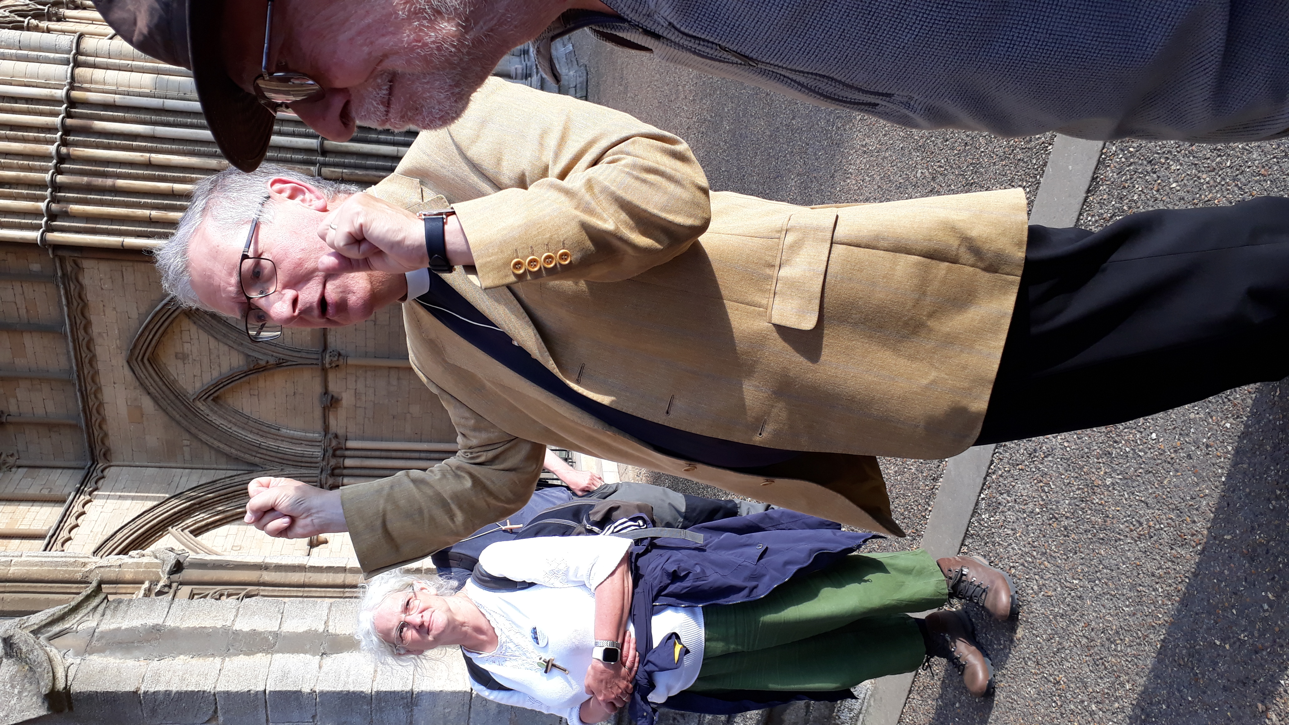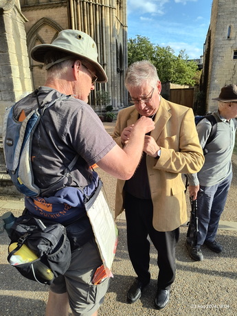 John presents a pilgrim cross to Canon Tim Allen Jones, who presided at evensong and then led us to the cathedral. Aidan Simons