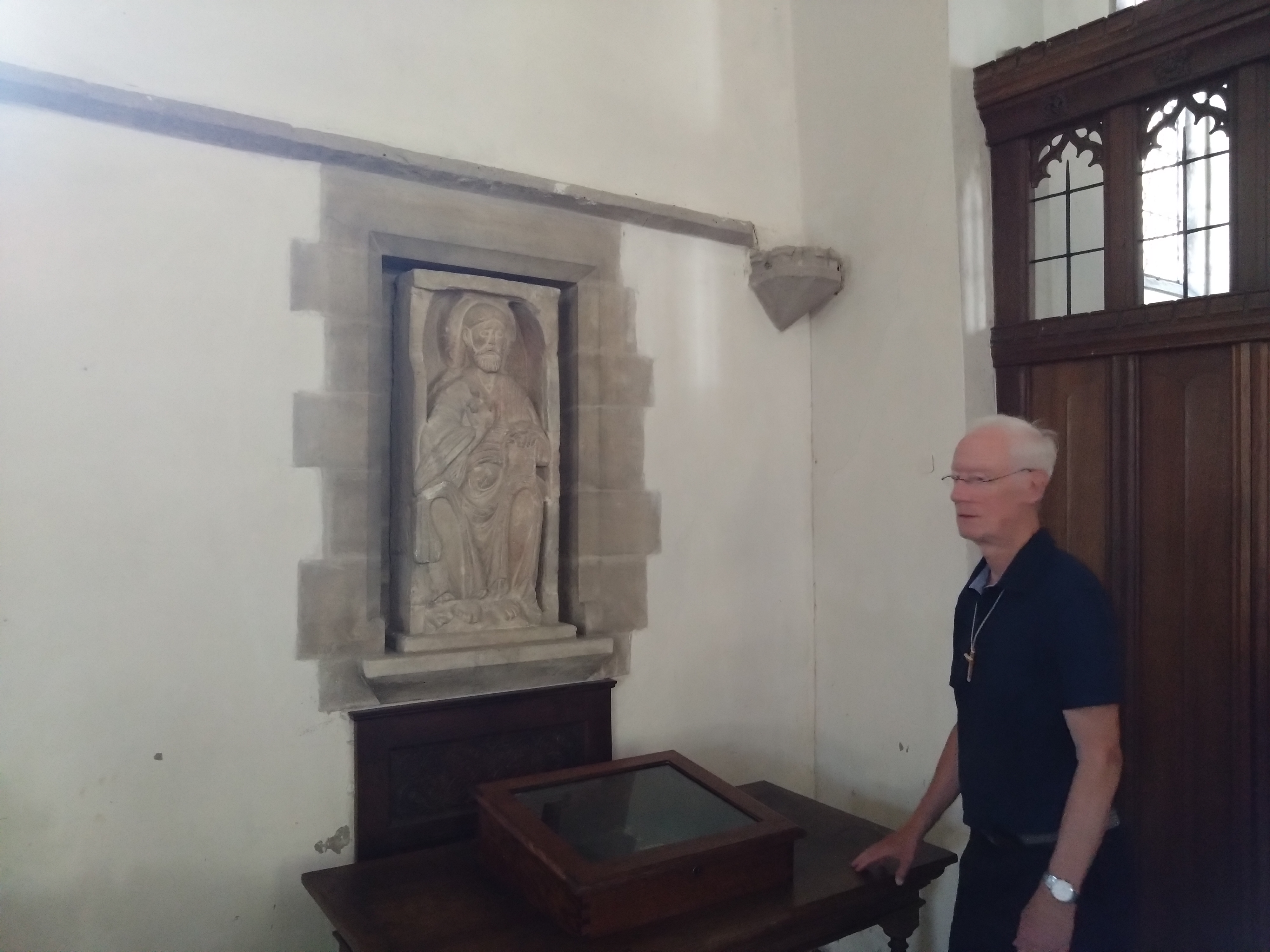 Viewing the possibly Saxon carving of Christ in Majesty (and if it is Saxon, then it is the best preserved Saxon sculpture in Great Britain) John Chenery