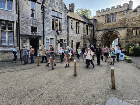 Pilgrims traipse through the gateway into the Cathedral Close Aidan Simons