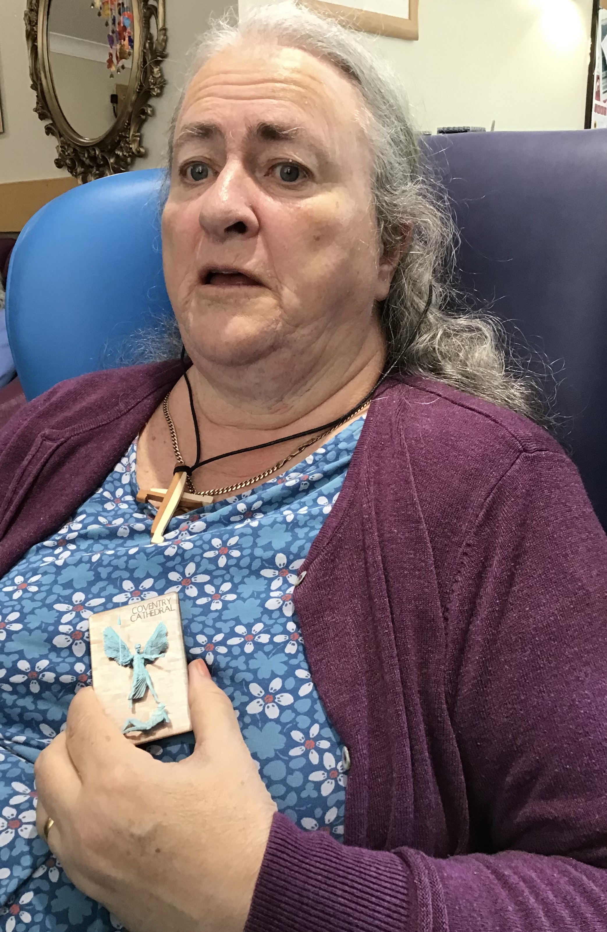 Susan expresses surprise at receiving a pilgrimage cross and memento of St Michael from Coventry Cathedral Michael McCabe