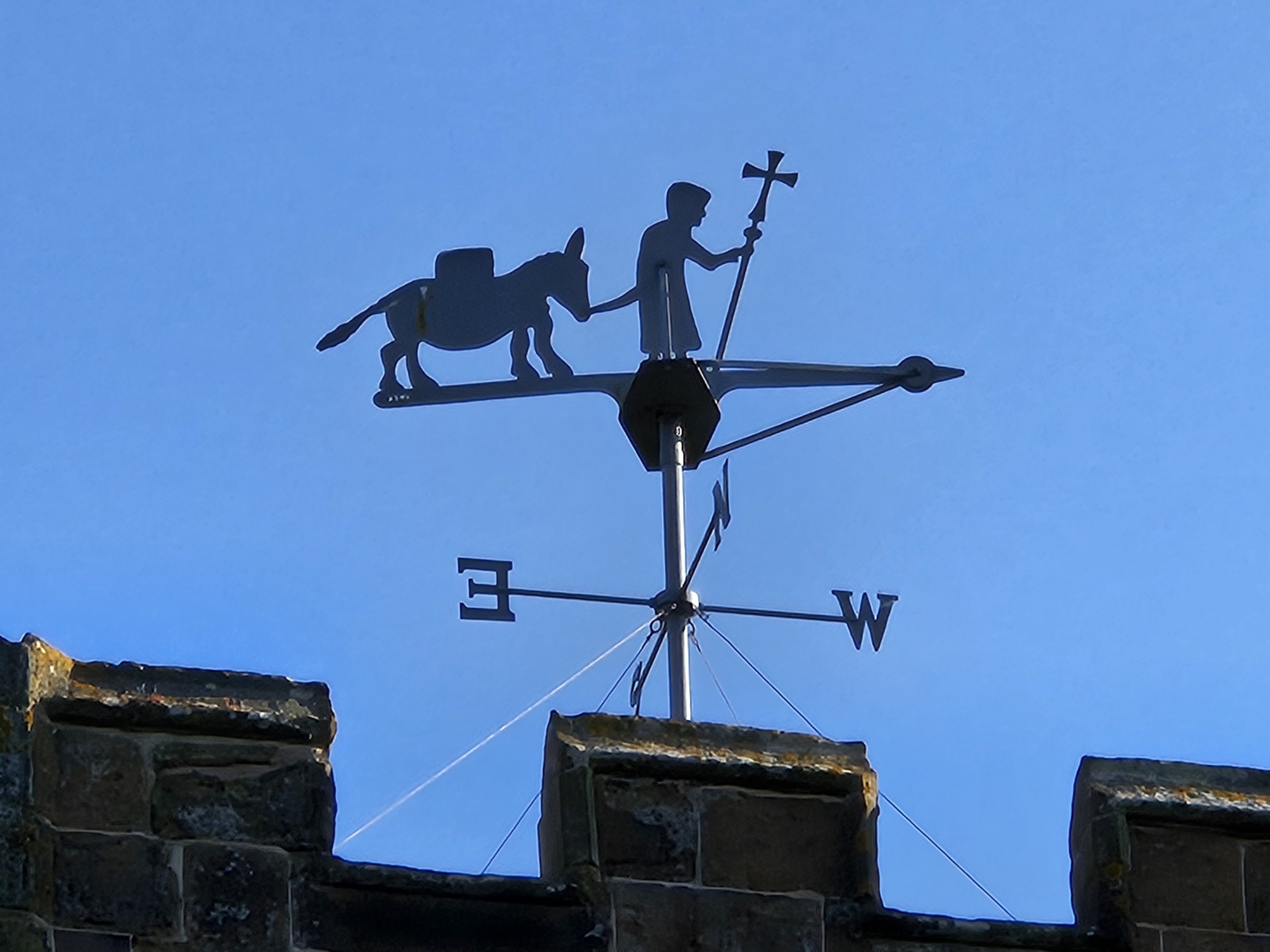 Weather Vane at Newbold on Avon Church (showing a pilgrim leading a donkey) Claire Glover