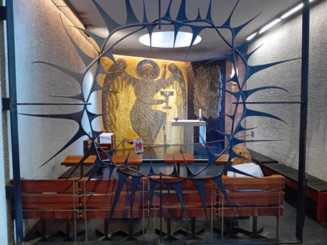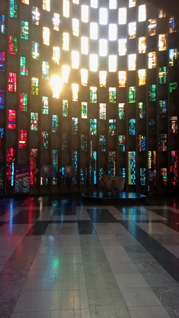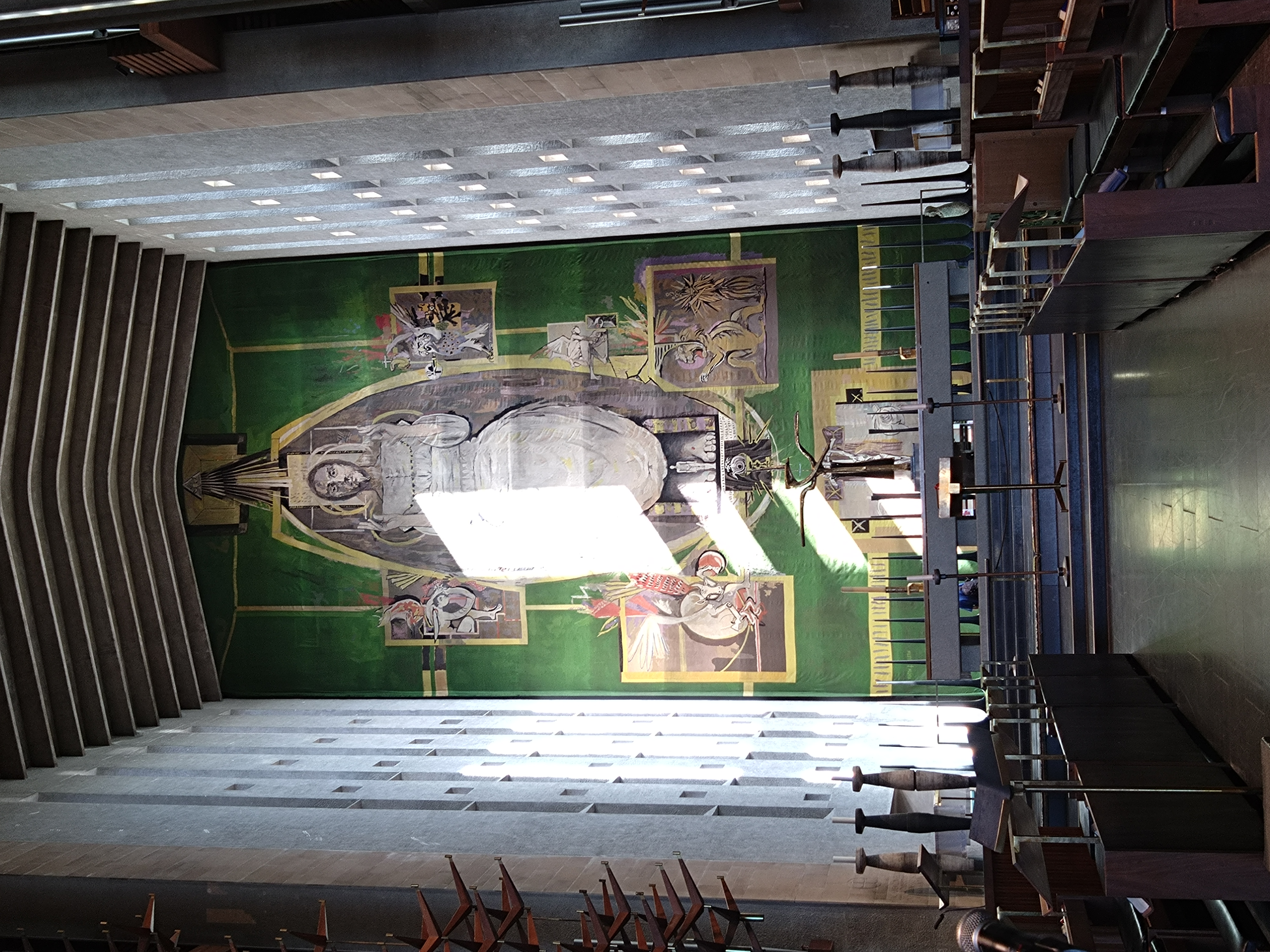 The huge tapestry at the east end of Coventry Cathedral John Chenery